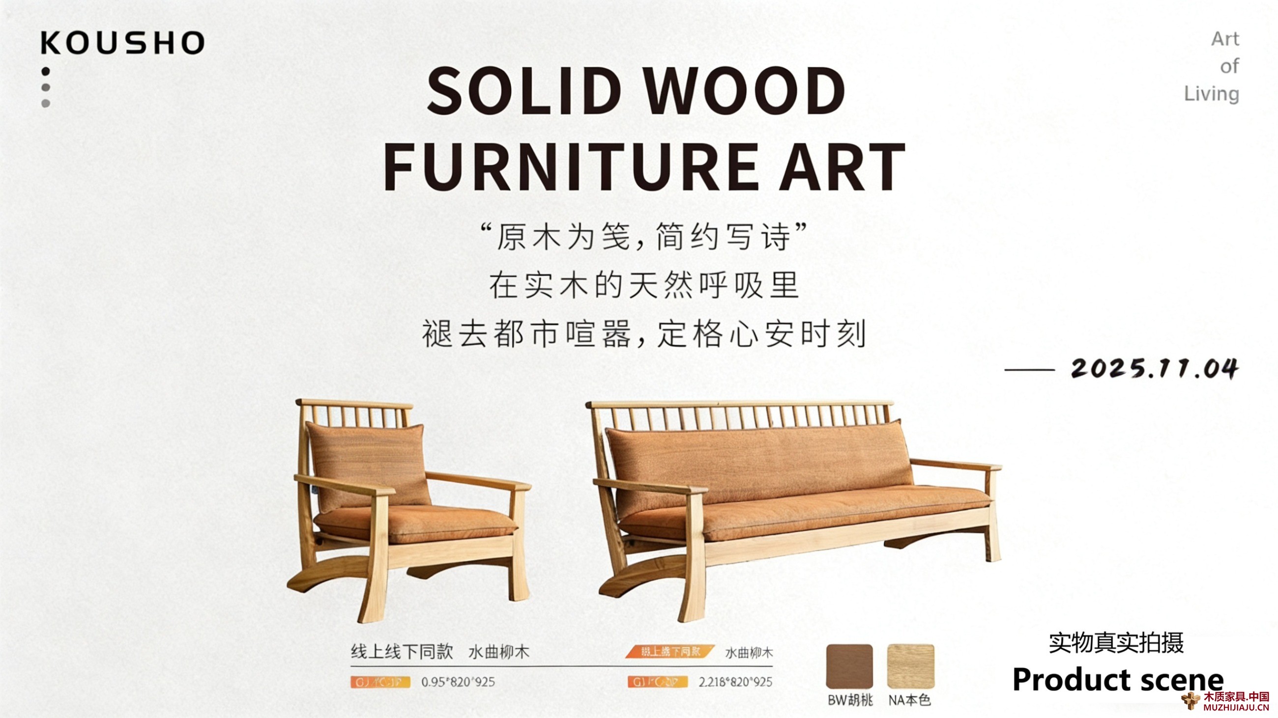 有BW胡桃的深沉雅致,亦有NA本色的清新自然,两种色调可与不同家居风格相融。摆于客厅,它不只是休憩的家具,更是空间里的艺术符号——阳光透过窗棂洒在木纹上,光影流转间,原木的纹理如诗行般铺展,“原木为笺,简约写诗”的意境,便在这一方小小天地里悄然绽放。